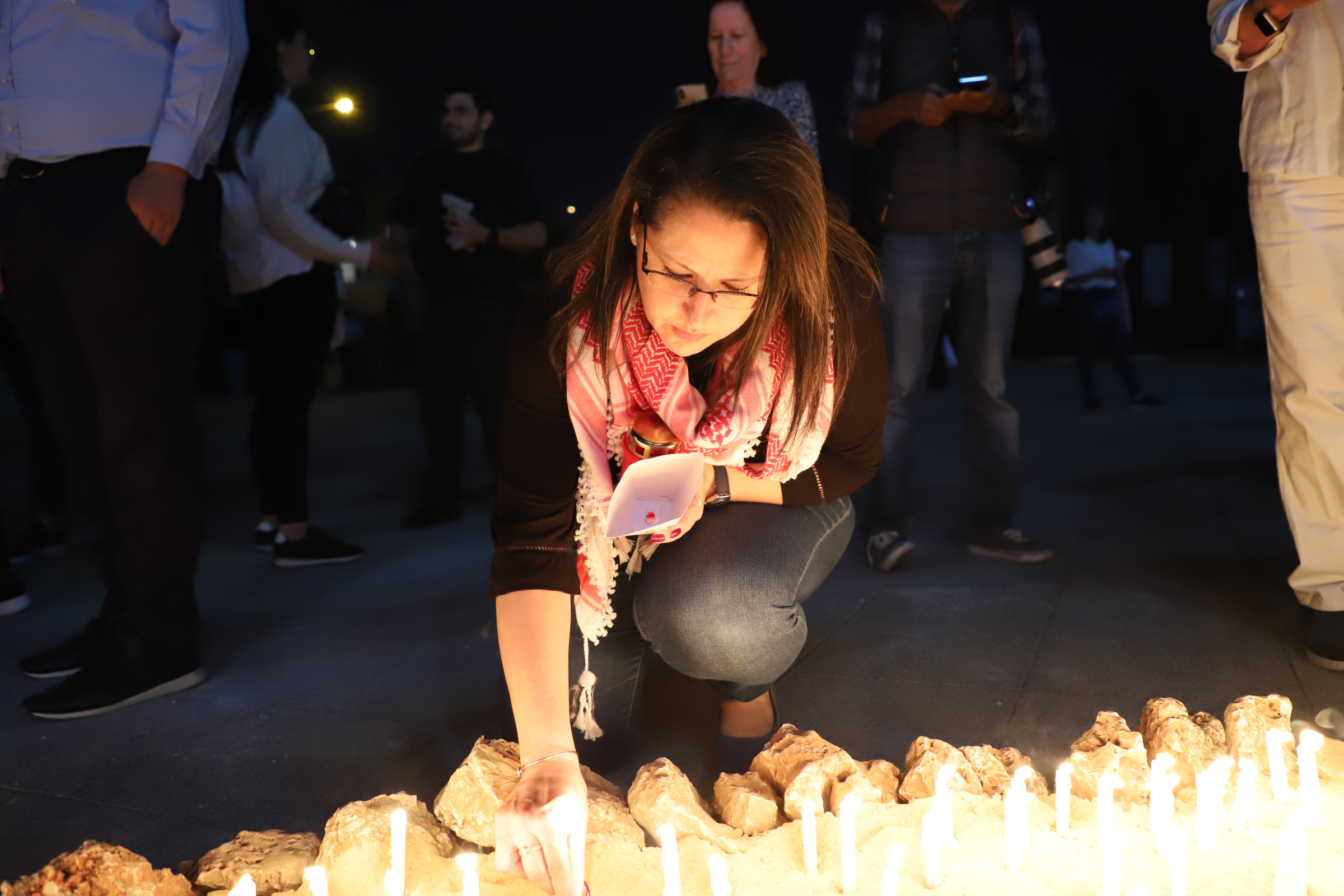 وشارك بالصلاة السفير البابوي لدى الاردن يوحنا دال توسو، و مدير المركز الكاثوليكي للدراسات والاعلام الاب رفعت بدر، والامين العام لمطرانية اللاتين الاب عماد علمات، وعدد من الكهنة والرهبان والراهبات والمؤمنين القادمين من مختلف الكنائس التابعة للبطريركية اللاتينية. ورفعت الجموع الشموع في ايديها، ووقفوا دقيقة صمت كصلاة حارة من أجل ارواح الشهداء.