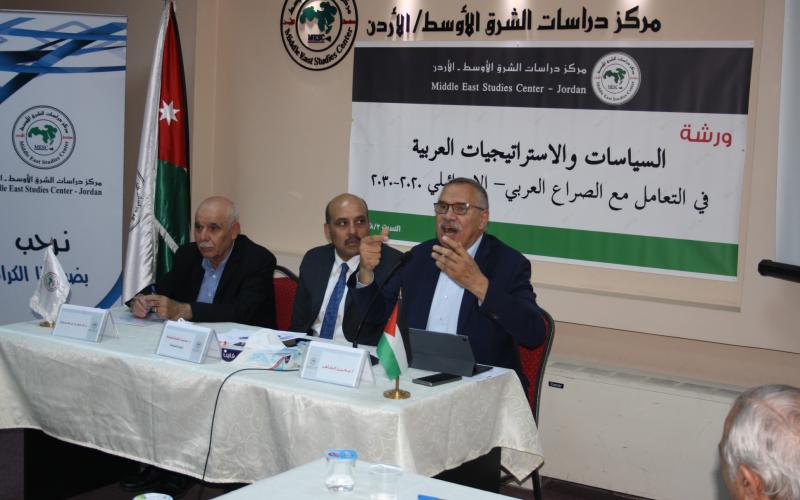 فيما ناقشت الورشة في جلستها الثانية الاستراتيجية العربية في التعامل مع الصراع العربي الإسرائيلي، والتي أدارها الدكتور محمد قطاطشة عميد كلية الامير الحسين للدراسات الدولية، وتحدث فيها كل من الخبير العسكري الفريق المتقاعد الدكتور قاصد محمود و الباحث الفلسطيني معين الطاهر، حيث قدم الدكتور قاصد محمود تحليلاً استراتيجياً للبيئة الخارجية والداخلية للصراع، ناقش فيها نقاط القوة والضعف كما قدم عناوين رئيسة في الاستراتيجية العربية والفلسطينية الشاملة والمطلوبة في مواجهة المشروع الصهيوني، وبناء حالة دعم للقضية الفلسطينية مع قوى دولية وإقليمية في وجه السياسات الأمريكية المنحازة لإسرائيل.