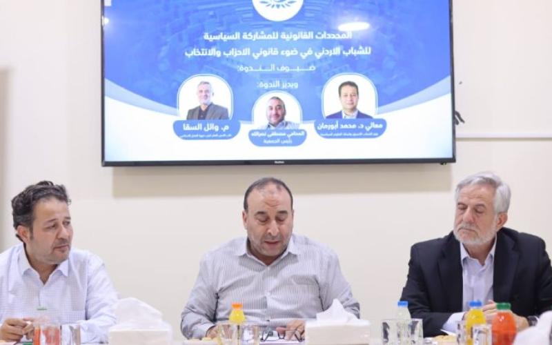 عقدت الجمعية الوطنية لحقوق الانسان الإثنين في مقرها ندوة حوارية حول “المحددات القانونية للمشاركة السياسية للشباب الاردني في ضوء قانوني الاحزاب والانتخاب” بمشاركة الدكتور محمد ابو رمان وزير الشباب الاسبق والمهندس وائل السقا النائب الأول للأمين العام لحزب جبهة العمل الاسلامي وقدم للندوة الاستاذ مصطفى نصر الله رئيس الجمعية .
