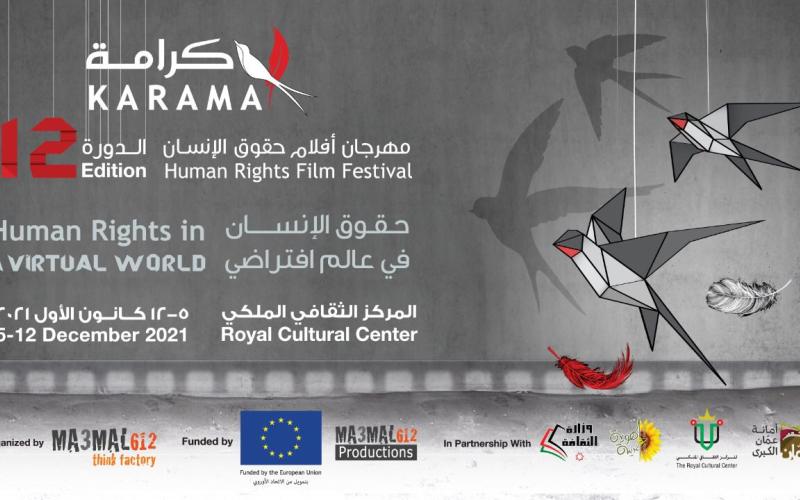 ينطلق مهرجان كرامة لأفلام حقوق الإنسان في دورته الثانية عشرة تحت عنوان «حقوق الإنسان في عالم افتراضي» محاكياً ما فرضته آثار جائحة كوفيد 19 بالتحوّل إلى عالم افتراضي في كافة المجالات، كما فرض إعادة تعريف وترتيب أولويات حقوق الإنسان في ظل العصر الرقمي الذي نعيشه حالياً، ليقدم مجموعة من أبرز الأفلام الروائية والوثائقية والتحريكيّة العالمية والعربية والمحلية والتي تعالج هذا المفهوم.