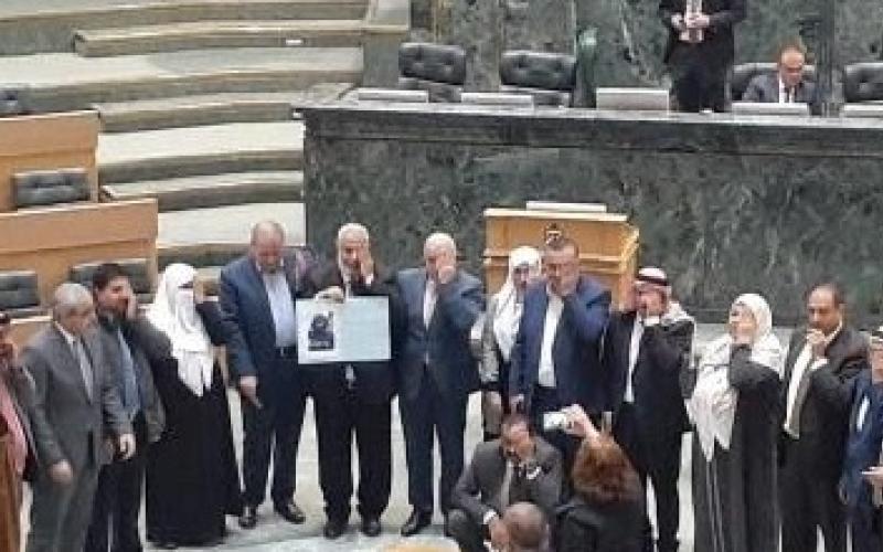 وحمل نواب صورة الفلسطيني عمارنة معبرين عن تضامنهم معه ضد قمع الاحتلال الاسرائيلي في قطاع غزة المحاصر.
