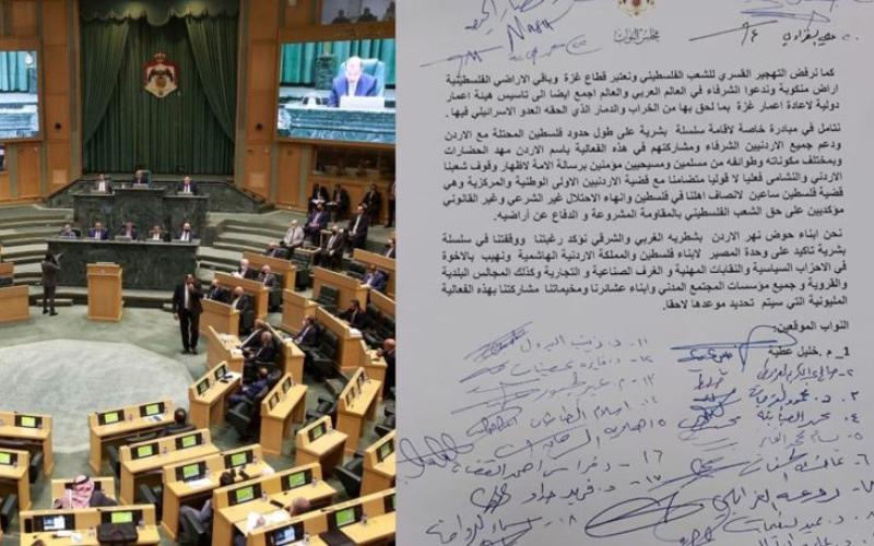 كما رفض النواب التهجير القسري للشعب الفلسطيني، واعتبروا “غزة وباقي الأراضي الفلسطينية أراض منكوبة”، وفقا للمذكرة النيابية.