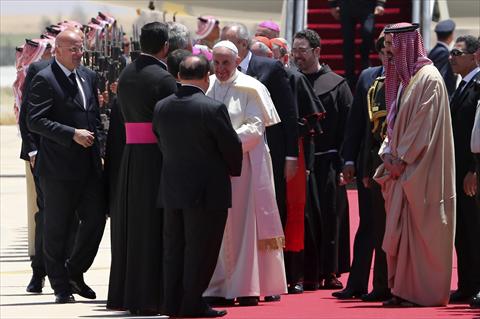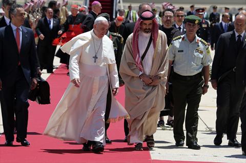 وصل البابا فرنسيس اللأول إلى عمان ظهر السبت، في زيارة حج بابوية للمملكة.