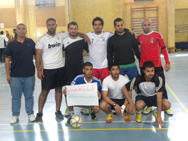 وقام الطلبة بتشكيل لوحة جسدية باسم الطالب دهيسات.