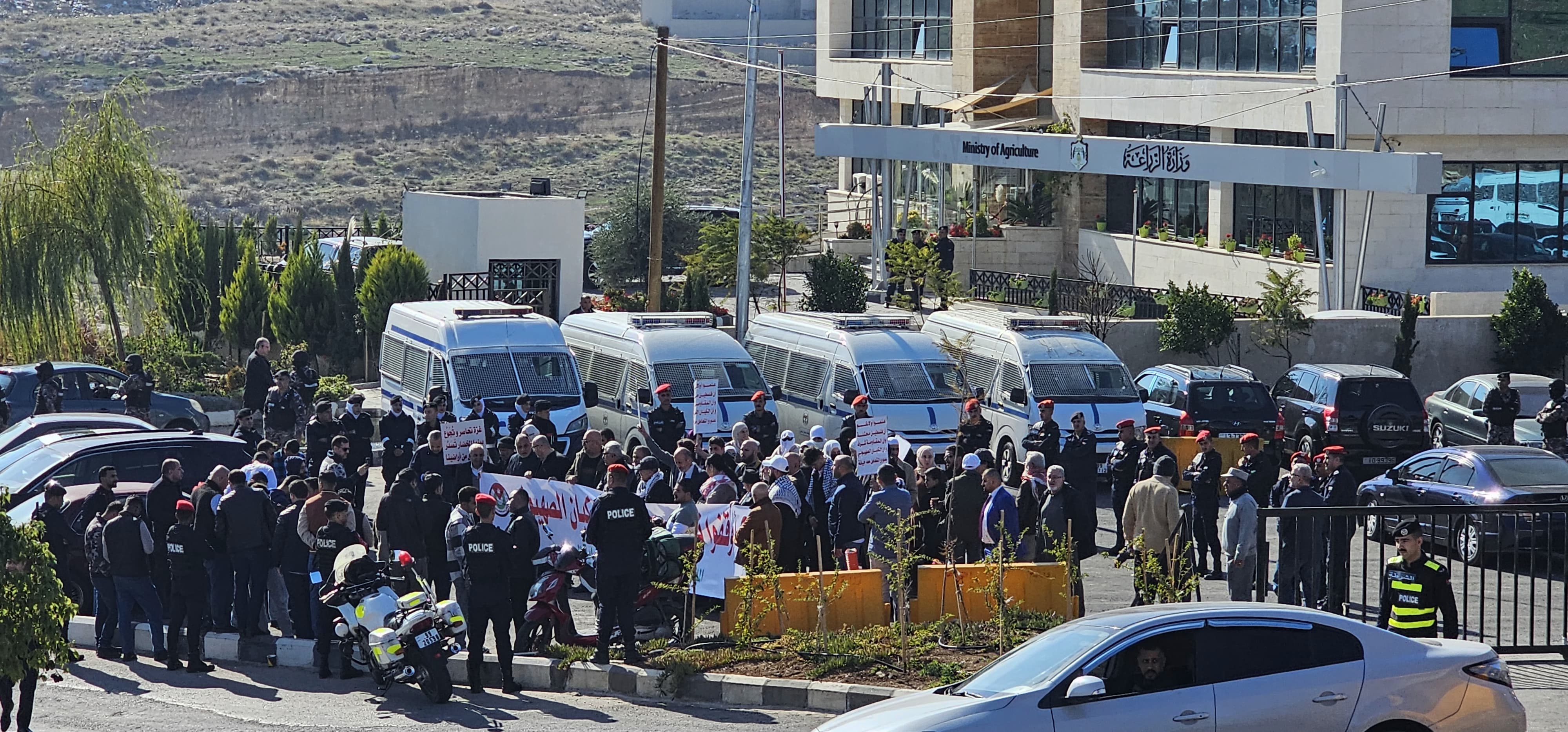 تابعت الوزارة وصول عدد من المواطنين للاعتصام بجوار مبنى الوزارة. وتقدر الوزارة وتحترم هذا المسار السلمي للتعبير عن الرأي في ظل الظروف الراهنة والتي تعبر عن وجع كل أردني، وتشير الوزارة إلى أن الحكومة ممثلة بوزارة الزراعة لا تصدر أي رخص تصدير للخارج ودورها يقتصر على فتح أسواق جديدة وتسهيل مسارات التسويق للمنتج المحلي.