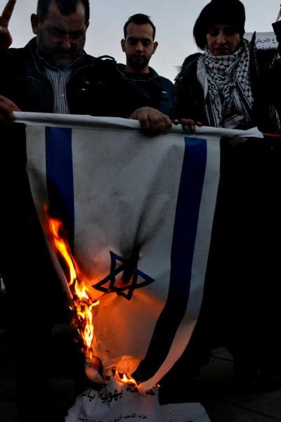 وقام المشاركون في ختام الوقفة بإحراق العلم الإسرائلي.