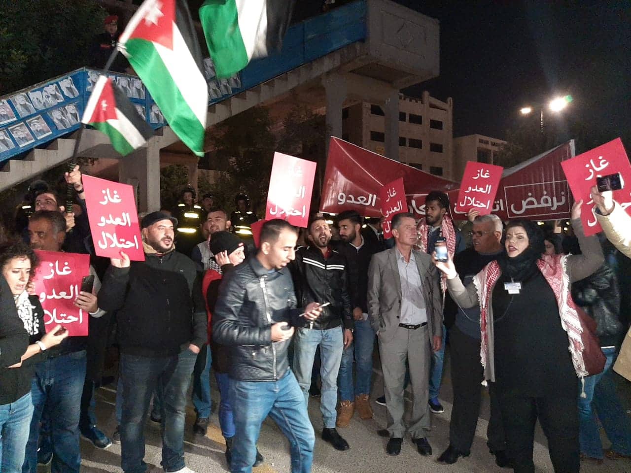 وقال معتصمون لعمان نت إنه تبقى 5 أسابيع فقط على بداية وصول غاز الاحتلال إلى الأردن، وهو ما يعني رهن أمن وطاقة وكهرباء الأردن بيد الاحتلال الاسرائيلي يهدّدوننا بها متى شاؤوا لـ15 عامًا قادمة،وأضافوا أن الأردن ليس بحاجة للاتفاقية كونه ينتج أكثر من حاجته الكهربائية ولديه بدائل للطاقة.