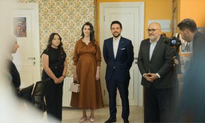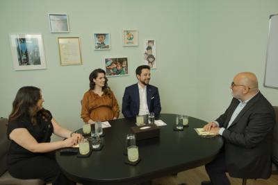 واستمعا إلى إيجاز قدمه مؤسسا الشركة شادي شرايحة وسنثيا مدانات حول مشاريع الشركة وحملاتها ومنهجية عملها، إذ أشارا إلى أن الشركة تعمل على إنتاج محتوى يساهم في معالجة قضايا اجتماعية تعنى بالأطفال والأسرة والصحة النفسية.