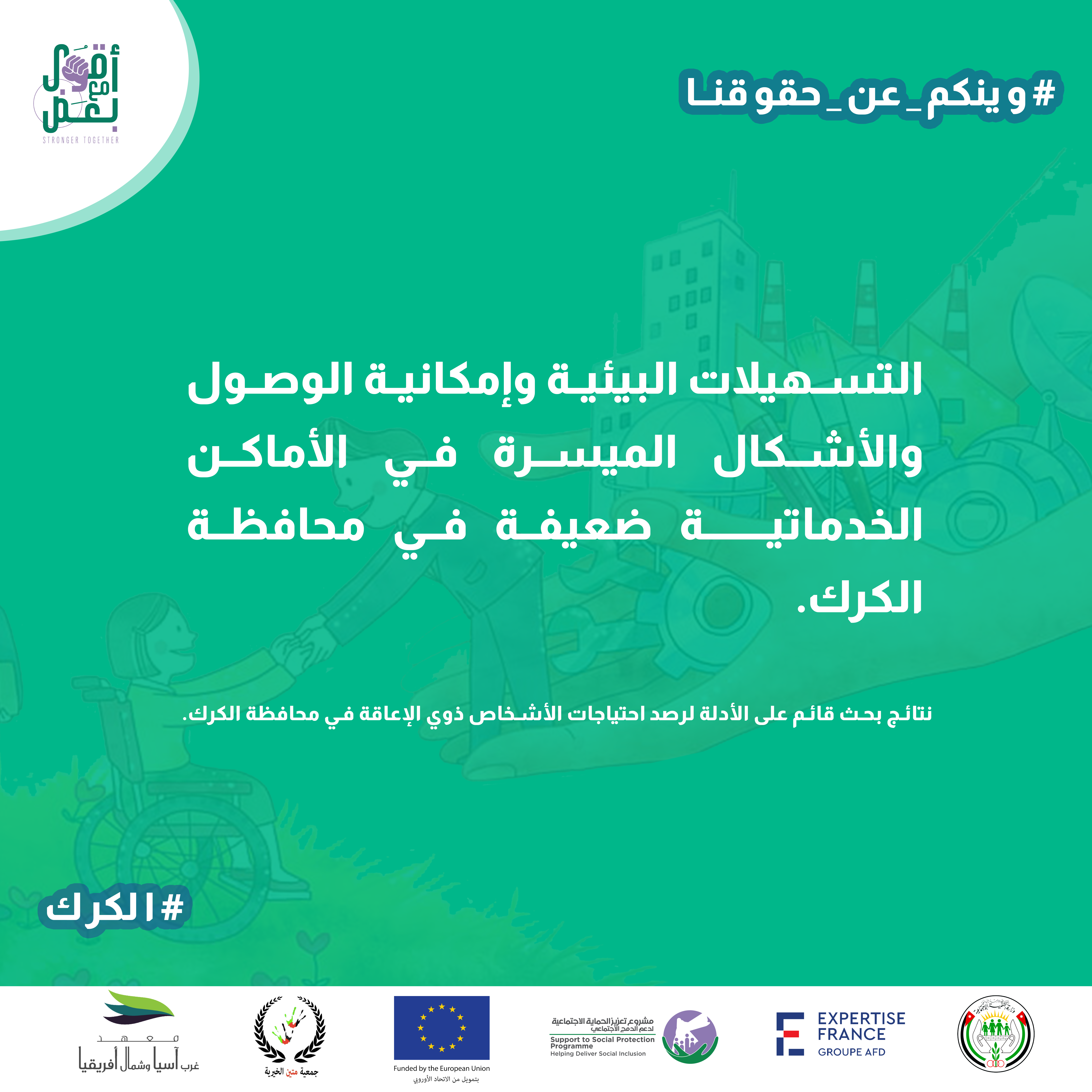 اختُتِمَت اليوم الحملة الإعلامية الخاصة بحقوق الأشخاص ذوي الإعاقة في محافظة الكرك والتي حَمَلت عنوان "وينكم عن حقوقنا" لرفع الوعي بحقوق الأشخاص ذوي الإعاقة وكيفية المُطالبة بها واستمرت لمدة خمسة أيام مُتواصلة.
