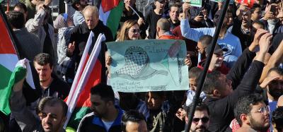 ورفع المشاركون في المظاهرة الحاشدة، التي دعت لها الحركة الإسلامية والملتقى الوطني لدعم المقاومة وحماية الوطن، لافتاتٍ تؤكد أنّ أمريكا شريكة في المجازر التي تحصل في فلسطين بسلاحها وقنابلها المدمرة وقرارها باستمرار الحرب على يد الجيش الصهيوني البربري وعدم وقف إطلاق النار رغم كل المواقف الدولية والأممية المطالبة بذلك.