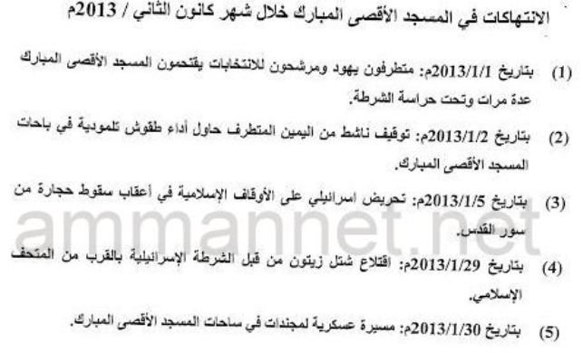 63 انتهاكاً بحق الأقصى خلال 2013.. وزيادة عدد حراسه- وثائق