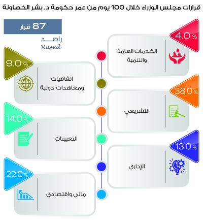 87 قراراً لمجلس الوزراء خلال 100 يوم، منهم 10 تعيينات.