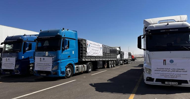 بتوجيهات ملكية سامية، سيّرت الهيئة الخيرية الأردنية الهاشمية بالتنسيق مع القوات المسلحة الأردنية – الجيش العربي، اليوم الخميس، قافلة مساعدات أردنية غذائية إلى الأشقاء في الجمهورية العربية السورية