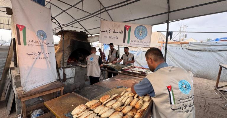 وزّعت الحملة الأردنية، بالشراكة مع الهيئة الخيرية الهاشمية، يوم الثلاثاء، كميات من الخبز على العائلات النازحة في منطقة المواصي غرب خان يونس، جنوب قطاع غزة، ضمن جهودها الإغاثية المستمرة للتخفيف من