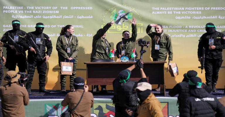 سلمت كتائب عز الدين القسام، السبت، أربع مجندات إسرائيليات محتجزات في قطاع غزة إلى اللجنة الدولية للصليب الأحمر في ميدان فلسطين بمدينة غزة. وجرت عملية تسليم المحتجزات الإسرائيليات في وقت مبكر عن الموعد