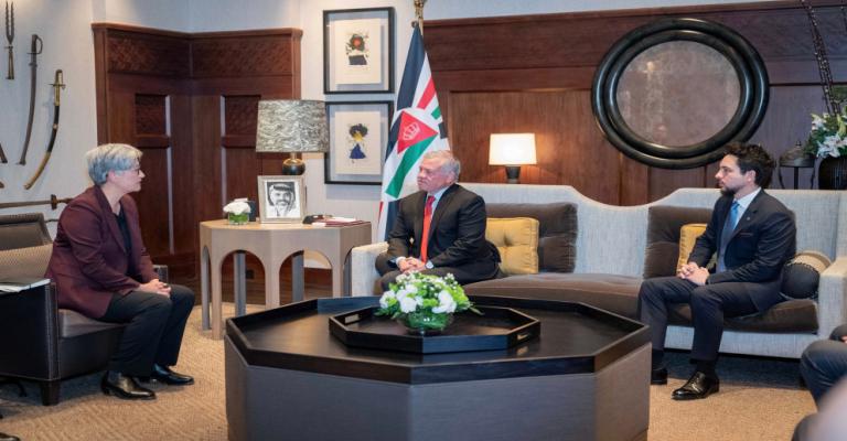 أكد الملك عبدالله الثاني خلال استقباله في قصر الحسينية، اليوم الثلاثاء، وزيرة الخارجية الأسترالية بيني وونغ أهمية بلورة موقف دولي موحد لوقف العدوان الإسرائيلي على غزة. وجدد الملك، بحضور الأمير الحسين