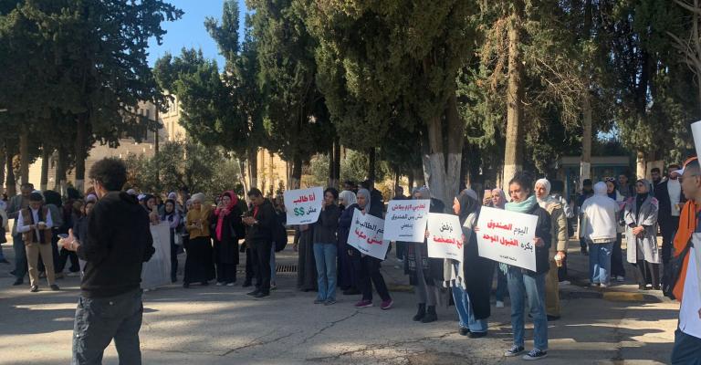 نظمت قائمة التجديد اليوم الثلاثاء وقفة احتجاجية في الجامعة الأردنية تحت شعار "لا لتخلي الدولة عن واجباتها" رفضًا لتعديلات صندوق دعم الطالب التي ستحرم أكثر من 50% من الطلاب المتقدمين للصندوق حيث كان من