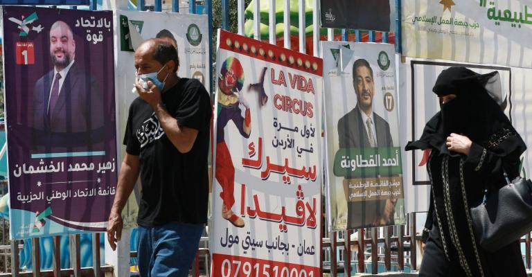 في أحياء العاصمة الأردنية عمّان المزدحمة ينعكس المشهد الانتخابي الأردني بسوريالية، ومن ذلك أنه فيما تتزاحم يافطات وصور للمرشّحين للانتخابات، في وسط "أحد الدواوير"، تتوسّطها صورةٌ كبيرةٌ لإعلان لـ"سيرك