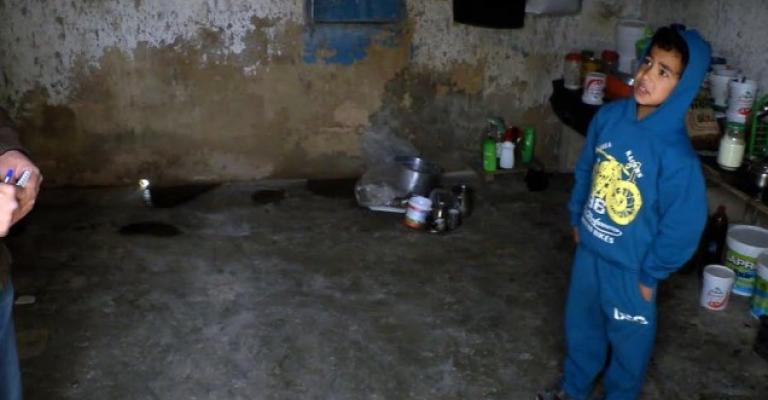 سكن متهالك تنخره الشقوق، تفترش أرضه أسرة لاجئة سورية، خلفت معيلها مقتولاً في غوطة دمشق، لتنزح إلى أطراف مدينة مأدبا من ضواحي العاصمة عمان طلباً للحياة. تشتكي المكلومة بزوجها أم عمر ضيق الحال، فهي