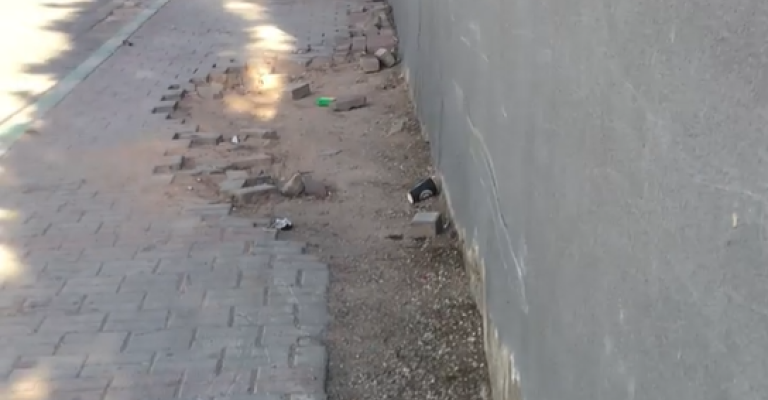 فيديو يظهر تكسر رصيف بمنطقة الكرك بجانب مدرسة أروى تعيق المارة و يضطرهم للعبور على الشارع المكتظ بحركة المركبات. تقول احدى المعلمات ان هذا الرصيف يجبر الطلبة والمارة بالعبور والمشي وسط الشارع وهو شارع