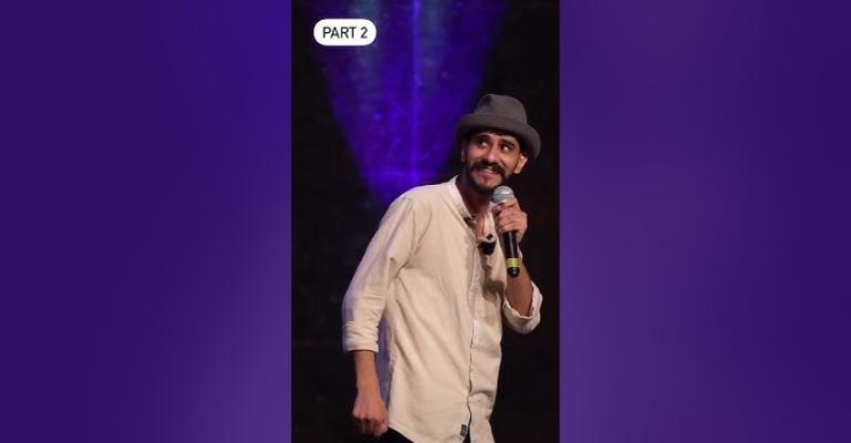 وسط ضحكات وتصفيق لا يتوقفان، يروي الشاب عبدالله صبيح قصة رحلته في البحث عن عمل بعد تخرجه من الجامعة، ويخبر الجمهور الذي ملأ المسرح عن تفاصيل مقابلات العمل، وعن طلبات الخبرة، ومقدار الراتب، وساعات