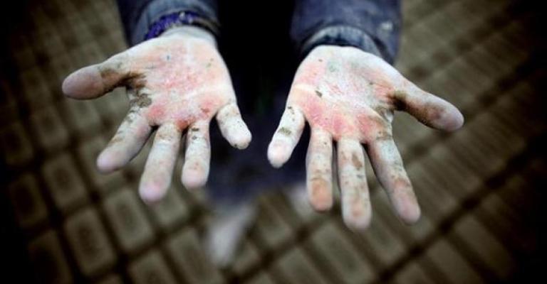 بينما ينظف أحمد 15 عاما اللاجيء السوري آلة طحن الفلافل بأحد المطاعم الشعبية تعرض لإصابة عمل أفقدتة ثلاثة أصابع وخلفت ندبة في نفسة لم تنتهي بعلاج ألم البتر. "أحمد ينظف الآلة باستمرار رغم حاجتها للصيانة
