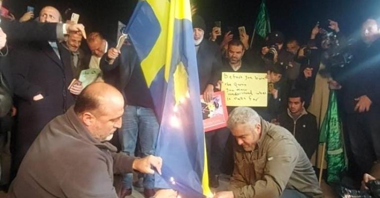 احرق مواطنون محتجون مساء الأثنين علم دولة السويد امام السفارة السويدية في عمان تنديدا بحرق نسخة من القرآن الكريم في العاصمة ستوكهولم. وأعرب المشاركون في الوقفة عن غضبهم حيال التطاول على القرآن الكريم،