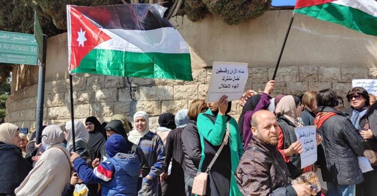 نفذت منظمات نسائية وائتلاف الأحزاب القومية واليسارية وجمعية اتحاد المرأة الأردنية وقفة احتجاجية أمام الأمم المتحدة بمناسبة الثامن من آذار يوم المرأة العالمي تحت شعار : نساء الأردن وفلسطين نضال مشترك