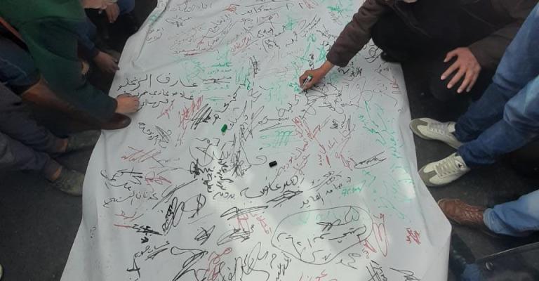 اعتصم عدد من الصحفيين، السبت، أمام مبنى نقابتهم احتجاجا على توقيف الصحفيين، وللمطالبة بالافراج عن الصخفي جمال حداد. و شهد الاعتصام حضورا حاشدا للصحفيين والاعلاميين والناشطين الحقوقيين بالاضافة إلى