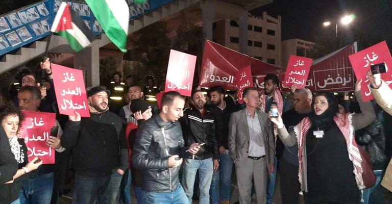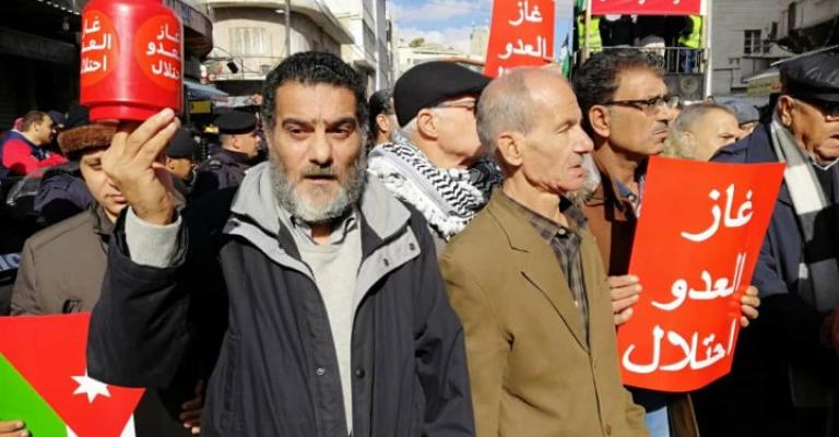 ندد مئات الأردنيين بمسيرة في وسط البلد عمان يوم الجمعة ببدء ضخ الغاز الاسرائيلي ضمن الاتفاقية التي وقعتها شركة الكهرباء الأردنية في 2016 مع شركة نوبل إنيرجي الأميركية صاحبة الامتياز بالتنقيب عن الغاز
