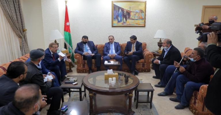 التقى رئيس مجلس النواب عبد الكريم الدغمي، الاثنين، عدد من ممثلي العاملين في شركة مصانع الإسمنت الأردنية (لافارج) الذين نفذوا اعتصاماً أمام المجلس لتحقيق مطالبهم. وقد خرج الدغمي أثناء الجلسة، واستدعى