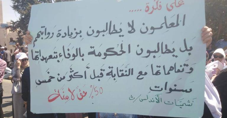 حمّلت نقابة المعلمين الحكومة المسؤولية الكاملة تجاه محاولات منع المعلمين من الوصول إلى عمان للمشاركة في الاعتصام، والتضييق عليهم بطريقة مباشرة أو غير مباشرة. وقال الناطق الإعلامي باسم نقابة المعلمين
