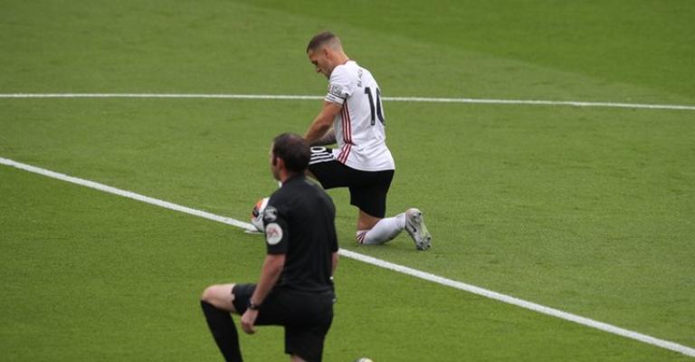 دشن فريقا أستون فيلا وشيفليد يونايتد عودة منافسات الدوري الإنجليزي الممتاز لكرة القدم، الذي توقفت منافساته منذ آذار/ مارس الماضي؛ بسبب تفشي فيروس كورونا المستجد، وشهدت المباراة إظهار الفريقين التضامن