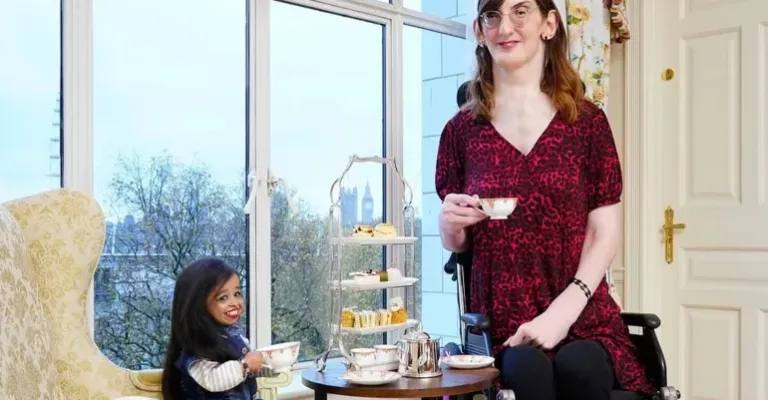 نظمت "غينيس" لقاء بين أطول امرأة في العالم التركية رميساء غلجي وأقصر امرأة في العالم الهندية جيوتي أمجي، في العاصمة البريطانية لندن احتفالا بالذكرى السنوية السبعين لتأسيس الموسوعة الشهيرة. ويبلغ طول