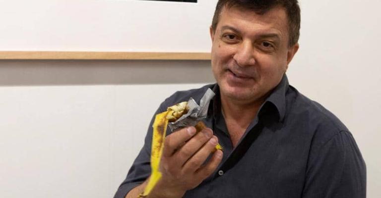 في لحظات.. انتهت "تحفة فنية" بقيمة 120 ألف دولار، كانت معروضة في معرض فني بمدينة ميامي بولاية فلوريدا، في بطن فنان.. والسبب أنه جائع. التحفة الفنية "موزة على الحائط"، التي كانت بمثابة "رمز للتجارة