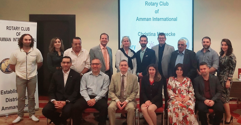 The newly chartered Rotary Club of Amman International celebrated Saturday the pinning of 13 new members in a festive gala dinner held at the Bristol Hotel. Club President Samuel Kakish, a 22 year