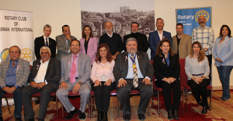 Two Amman-based Rotarian clubs participated in the October cancer awareness program by listening to a lecture from an expert from the King Hussein Cancer Center Wednesday. Dr. Yassar Qutaiba, Director