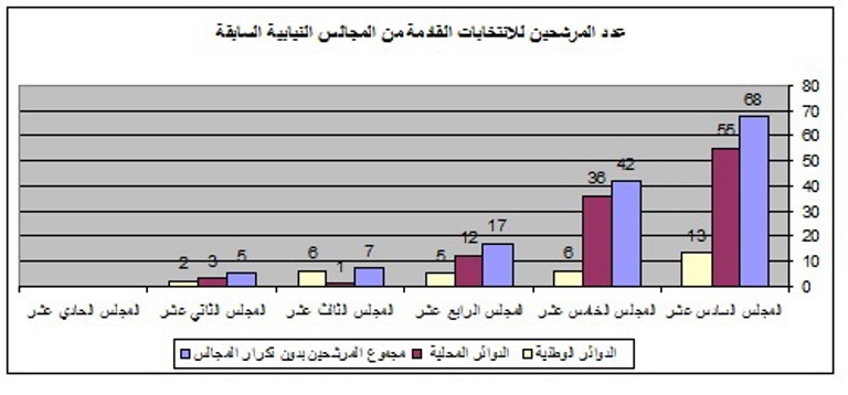 - 68 مرشحا من المجلس السابق: 55 على الداوئر و13 على القوائم