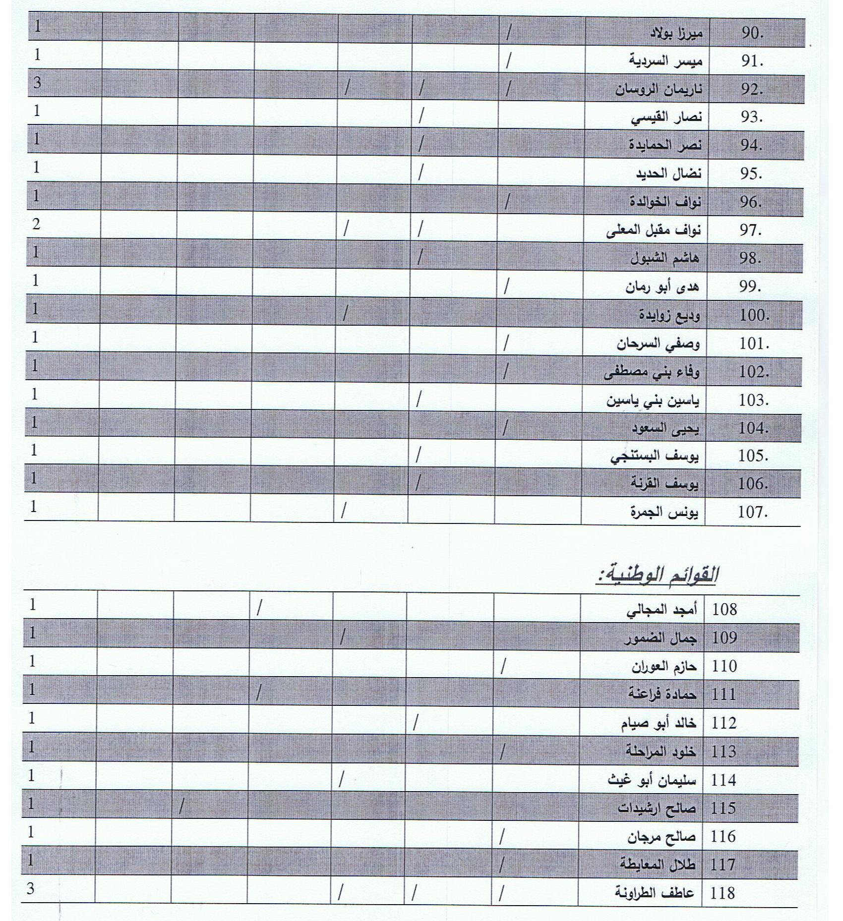 المرشحون خليل عطية، مفلح الرحيمي، عبد الهادي المجالي، منير صوبر ومحمد الذويب تواجدوا في (4) مجالس نيابية.