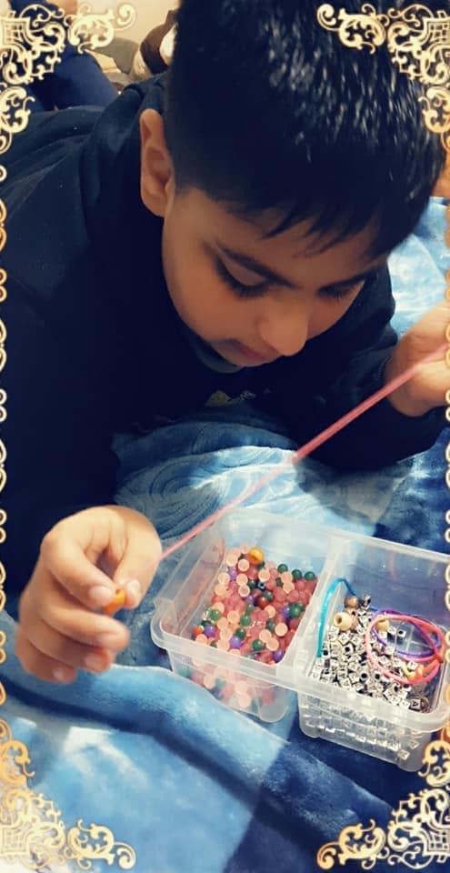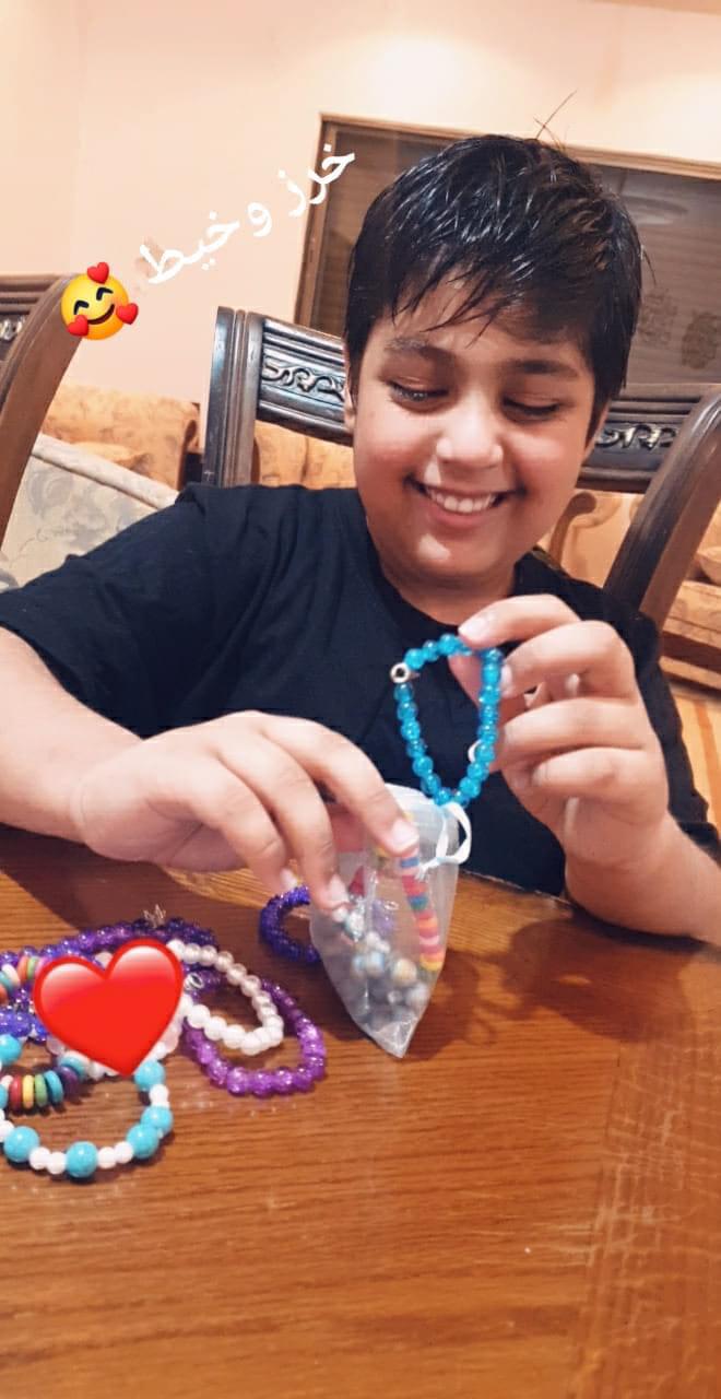 وتقول والدة سيف الدين الحمود صاحب مشروع "خرز وخيط" من ذوي الإعاقة العقلية، أن فكرة إيجاده لمشروعه جاءت من طريقة علاجه بحد ذاتها، حيث تمت توصيته باللعب بالخيط والخرز لمضاعفة تواصله البصري وتخفيف أعراض مرضه "التوحد".
