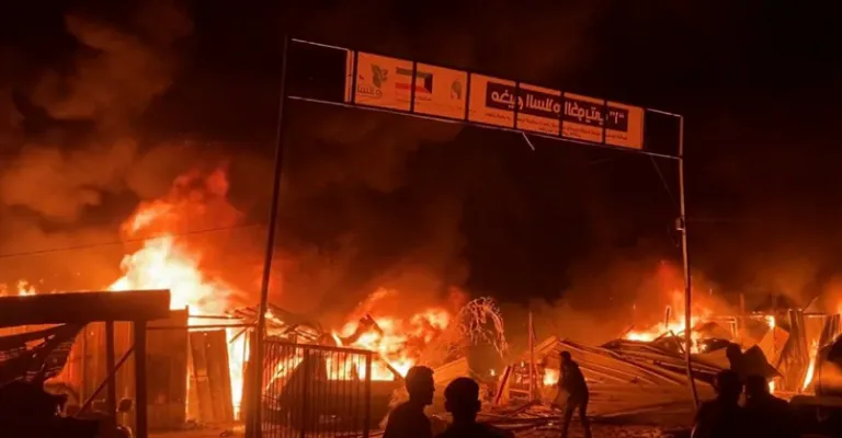 شهدت خيام النازحين فجر الإثنين غارات إسرائيلية على محيط مستشفى شهداء الأقصى في دير البلح مأساة إنسانية مروعة حيث وقعت مجزرة دامية أسفرت عن 4 شهداء بينهم امرأة وطفل ونحو 40 مصابا و جثامين الشهداء تفحمت