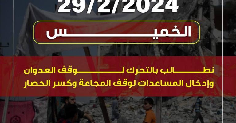 - استشهاد فلسطيني وإصابة آخران، مساء الأربعاء، في قصف الاحتلال الإسرائيلي، شرق مدينة دير البلح، وسط قطاع غزة