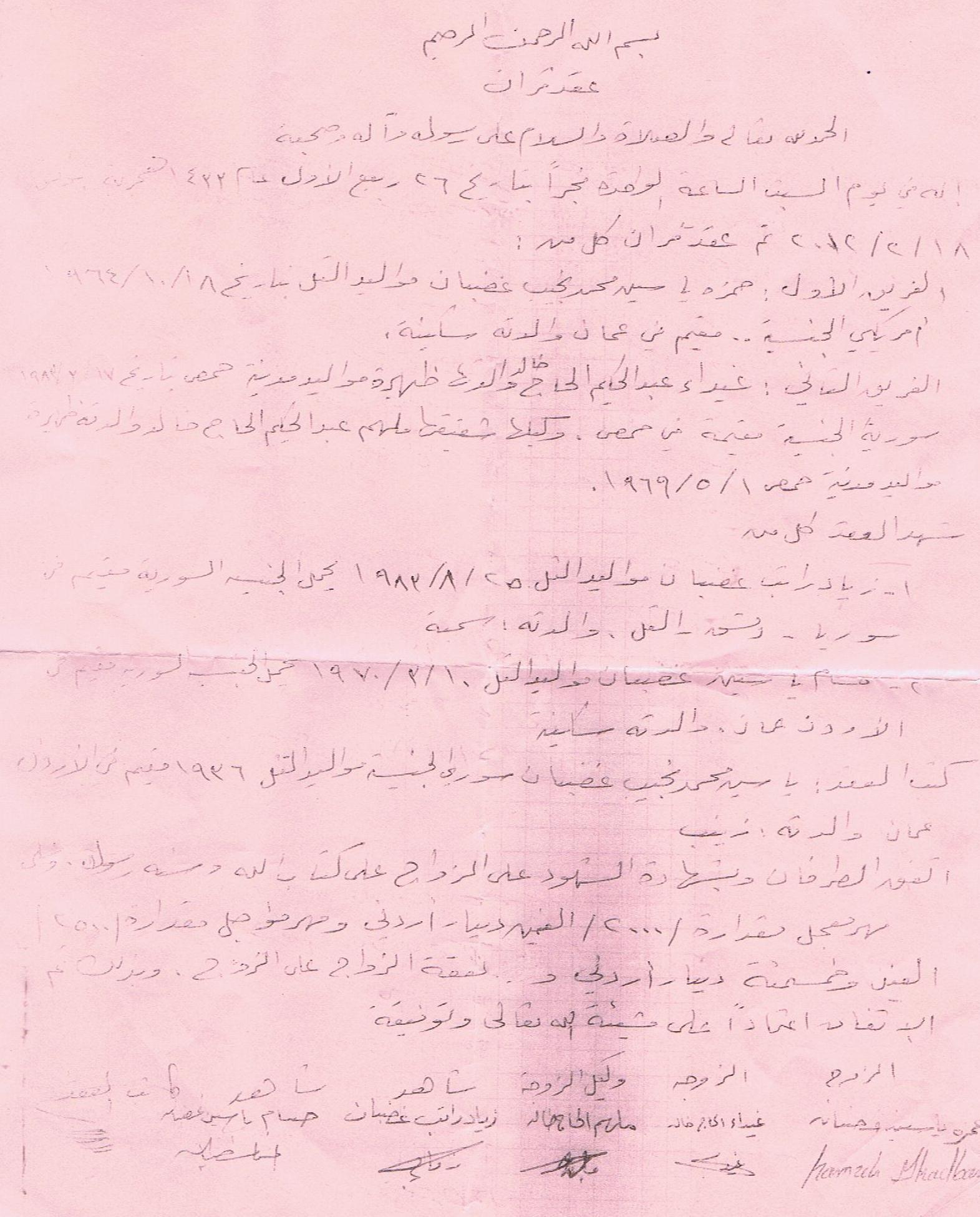 غيداء، تخشى مراجعة السفارة السورية في عمان، للحصول على الوثائق المطلوبة من المحكمة، لكون زوجها مطلوب لدى السلطات السورية، ما دفعها لتوكيل محام وبعض المعارف هناك، ليبلغ إجمالي تكلفة إحضار هذه الوثائق 600 دينار أردني، أي ما يعادل 780 دولارا. دفعتها غيداء لقاء توثيق زواجها ونسب الطفل.