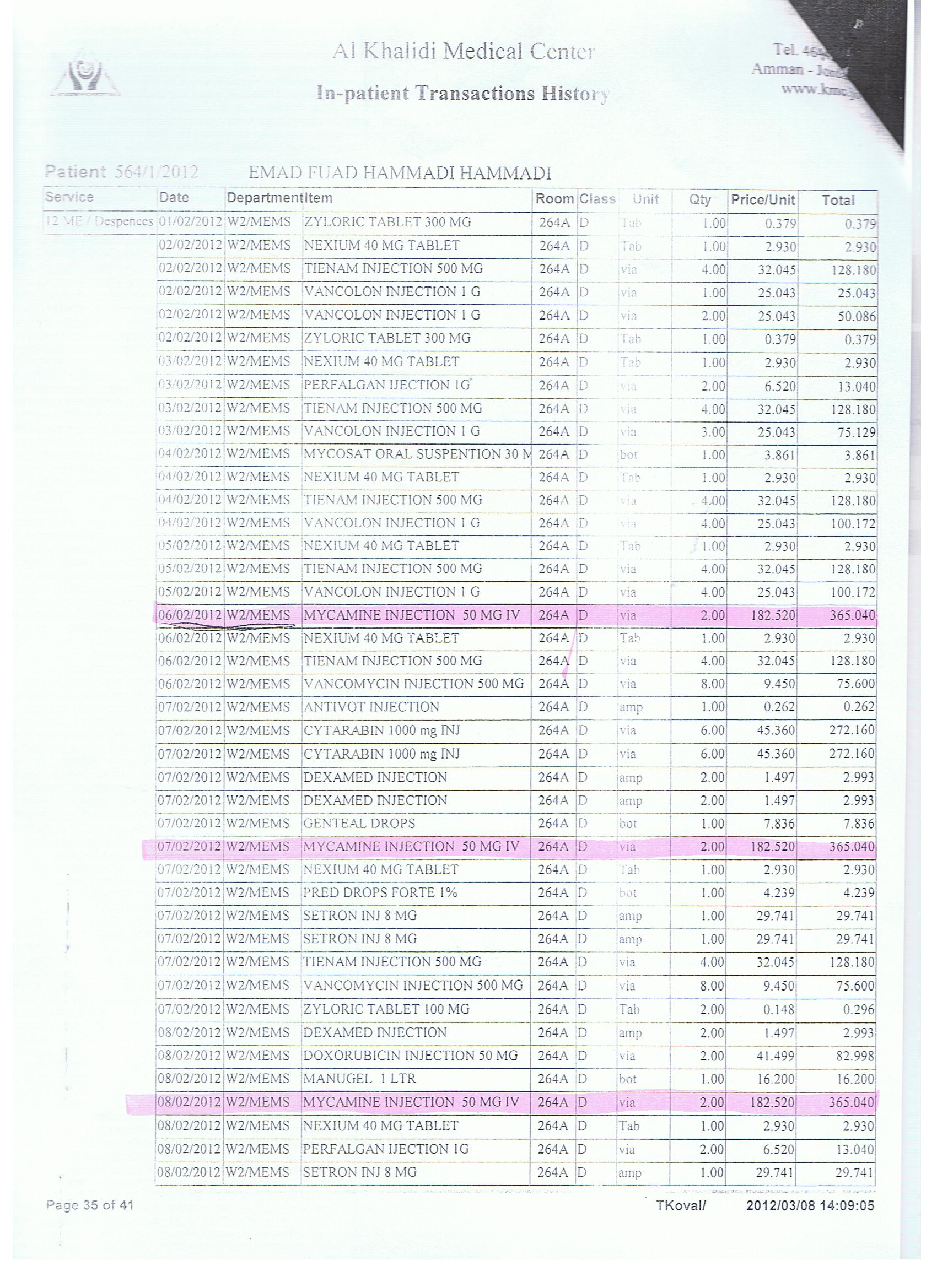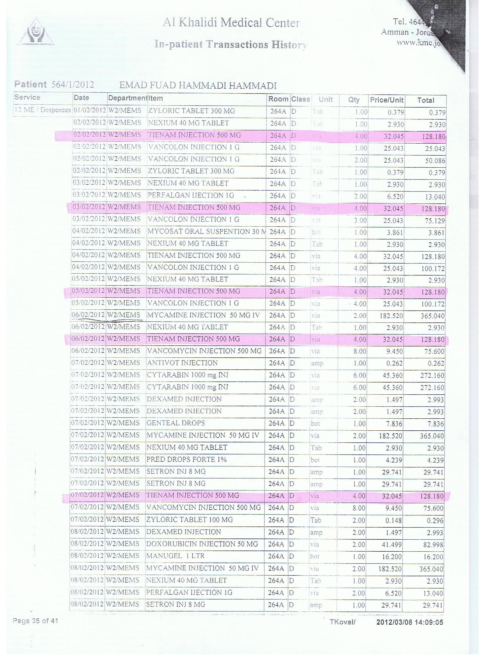 فكشف حساب أسعار الأدوية التي تلقاها عماد في المستشفى والبالغ أكثر من 11 ألف دينار، يزيد بمقدار، 2024 دينار عن السعر المقرر من قبل المؤسسة العامة الغذاء والدواء.