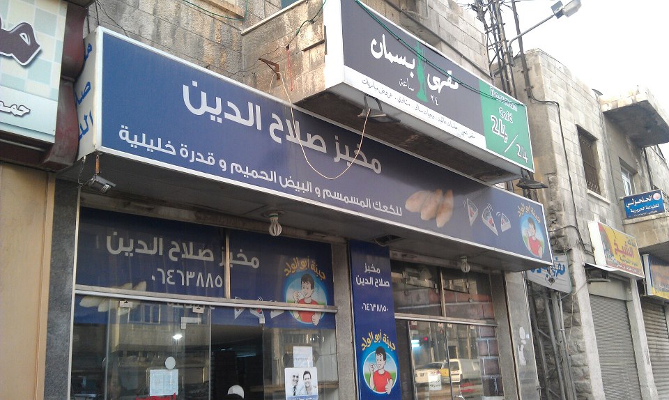 لا يقدم مخبز صلاح الدين -الواقع على سفح جبل اللويبدة- الخبز، اذ يقتصر عمله منذ 1968 على إعداد الكعك بالسمسم يقدمه الى جانب الزعتر المجاني والبيض والجبنة.