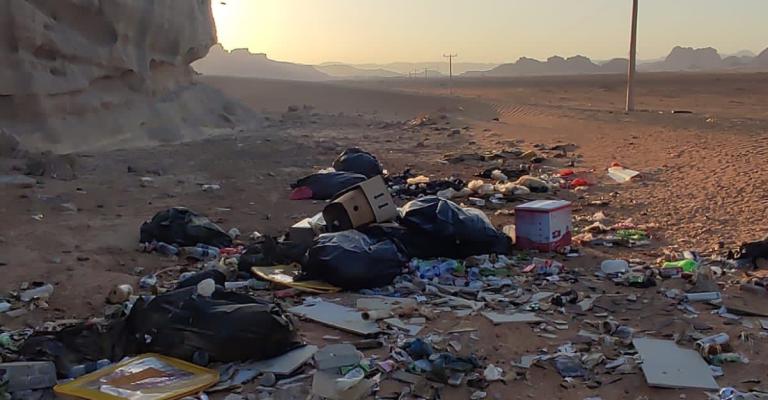 وادي رم، أو كما يعرف "وادي القمر"، وجهة سياحية أردنية تشوه معالمها أكوام النفايات المتكدسة قرب المخيمات السياحية المنتشرة في أرجاء الصحراء، وسط تقاذف الاتهامات بشأن المسؤولية عن الحال الذي وصل إليه