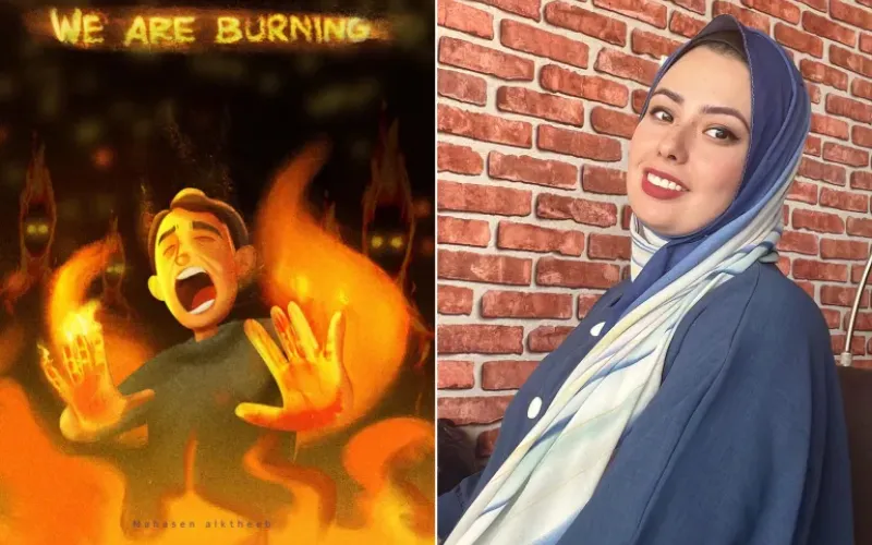 "نحن نحترق".. آخر أعمال الفنانة الفلسطينية محاسن الخطيب قبل استشهادها في جباليا