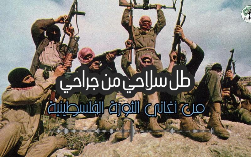 وكانت أغنية "طل سلاحي" من أشهر هذه الأغاني، وهي قصيدة كتبها شاعر الثورة الفلسطينية صلاح الدين الحسيني، ولحنها مهدي سردانة، وغنتها الفرقة المركزية الفلسطينية، وكلماتها: