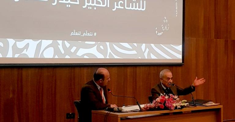 نظمت أكاديمية الملكة رانيا لتدريب المعلمين، مساء اليوم الأحد، أمسية شعريّة للشاعر حيدر محمود، ضمن فعالياتها للاحتفاء باليوم العالميّ للغة العربيّة. وألقى الشاعر محمود، في الأمسية، قصيدة جديدة بمناسبة