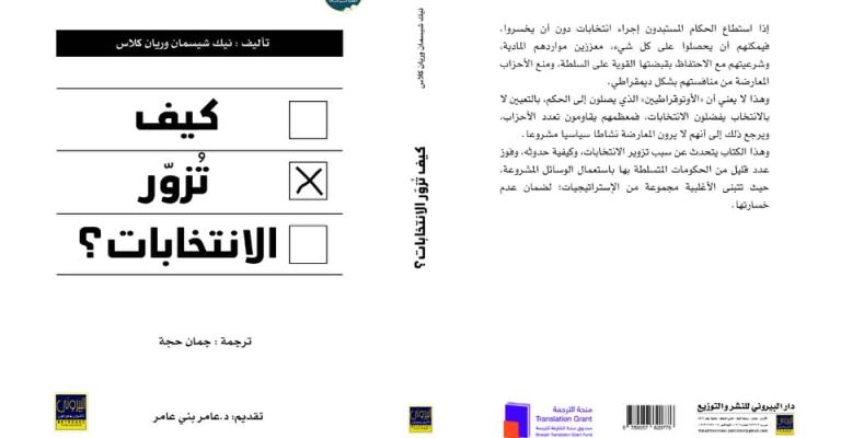 صدر عن دار البيروني للنشر والتوزيع الترجمة العربية لكتاب" كيف تزور الانتخابات؟" من تأليف نيك شيسمان، وريان كلاس وترجمة جمان حجة والكتاب يتناول بالتفصيل تجارب عديدة انتخابية ملاحظا سلبياتها وكيفية عمل
